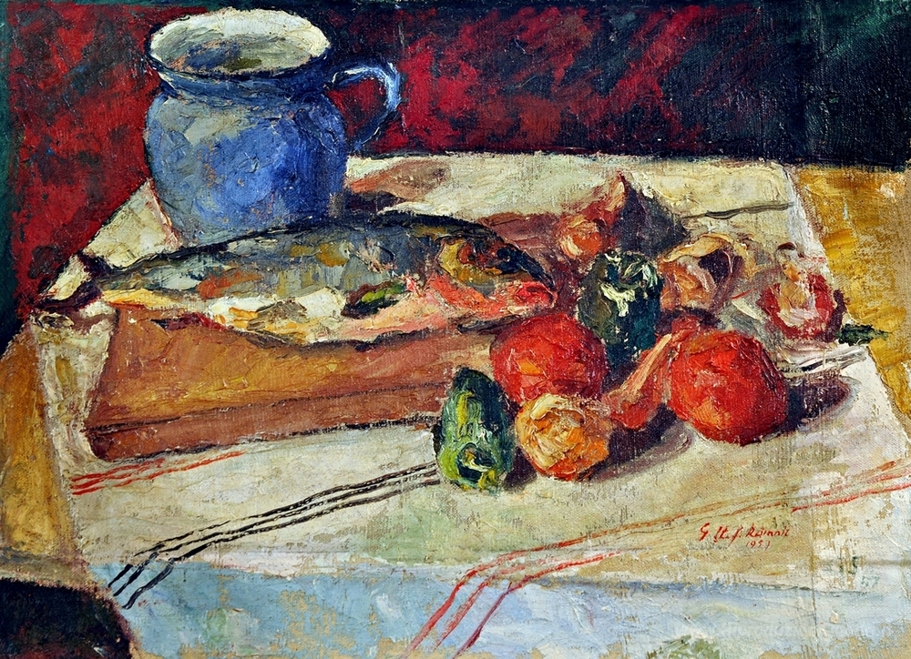 Ti offriamo una riproduzione artigianale su tela dell'opera famosa 'Natura morta con pesce' di George Stefanescu-Ramnic , dal Museo delle Riproduzioni.