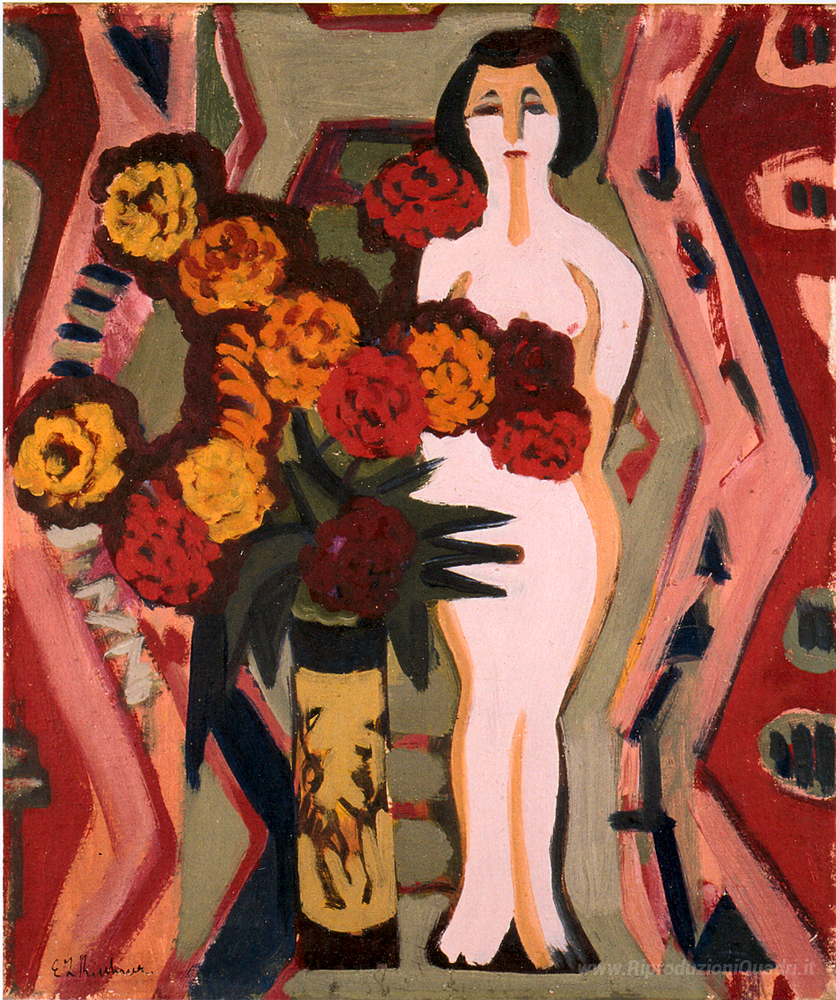 Ti offriamo una riproduzione artigianale su tela dell'opera famosa 'Natura morta con Scultura' di Ernst Ludwig Kirchner, dal Museo delle Riproduzioni.