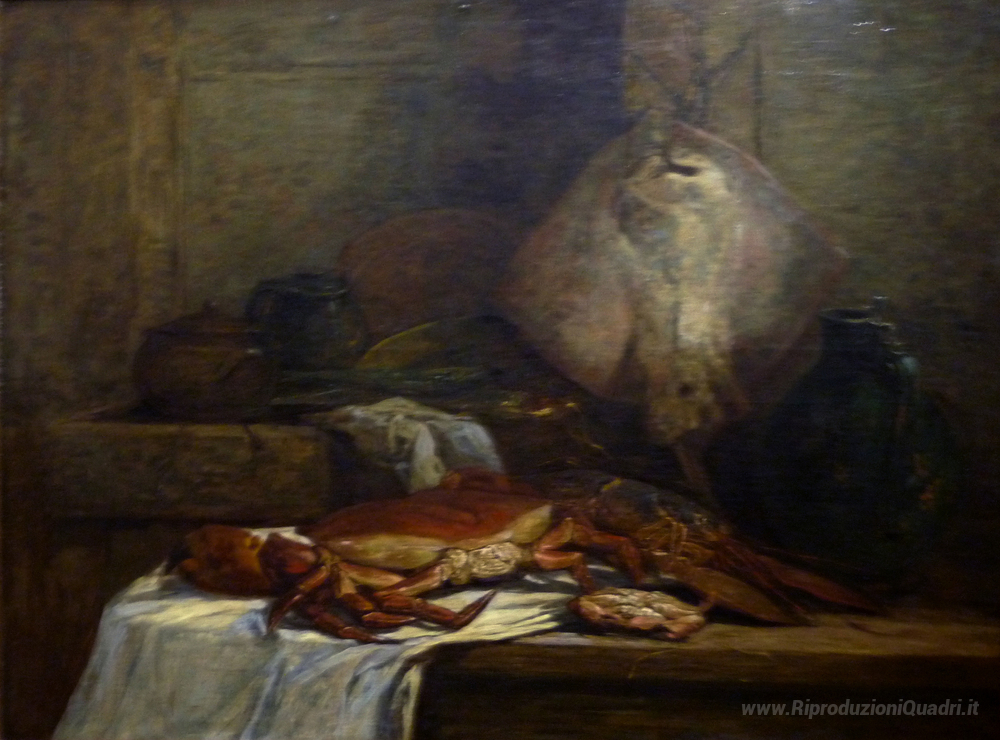 Ti offriamo una riproduzione artigianale su tela dell'opera famosa 'Natura morta con Skate' di Eugene Boudin, dal Museo delle Riproduzioni.