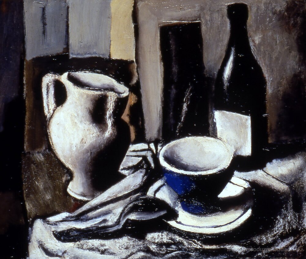 Ti offriamo una riproduzione artigianale su tela dell'opera famosa 'Natura morta con tazza blu' di Mario Sironi, dal Museo delle Riproduzioni.