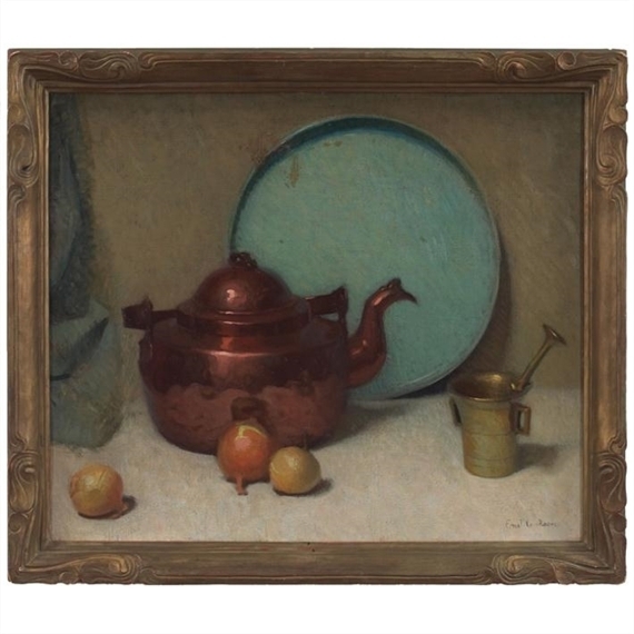 Ti offriamo una riproduzione artigianale su tela dell'opera famosa 'Natura morta con teiera' di Emil Carlsen, dal Museo delle Riproduzioni.
