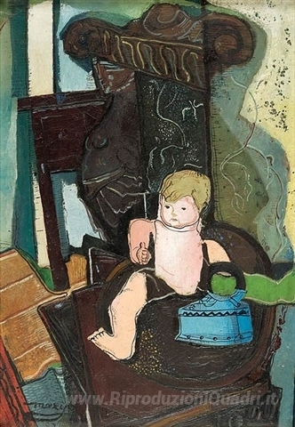 Ti offriamo una riproduzione artigianale su tela dell'opera famosa 'Natura morta con un celluloide bambola e Ferro' di M. H. Maxy, dal Museo delle Riproduzioni.