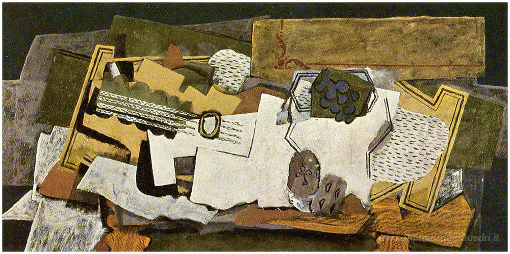 Ti offriamo una riproduzione artigianale su tela dell'opera famosa 'Natura morta con una chitarra' di Georges Braque, dal Museo delle Riproduzioni.