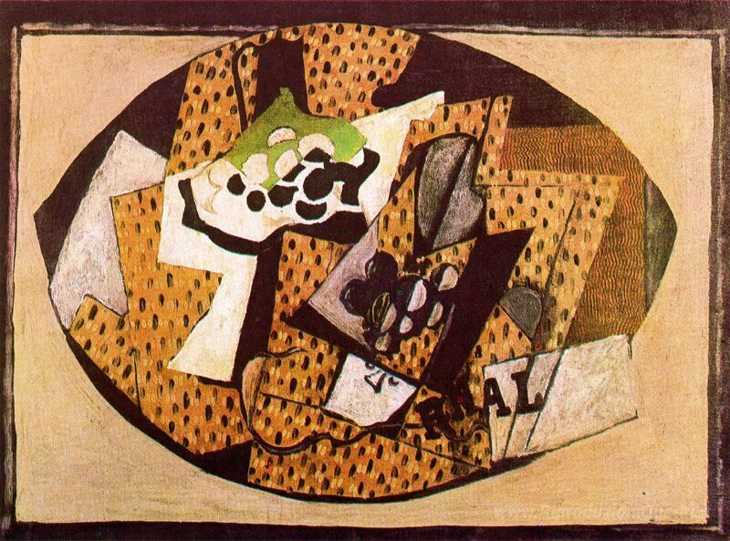 Ti offriamo una riproduzione artigianale su tela dell'opera famosa 'Natura morta con uva (II)' di Georges Braque, dal Museo delle Riproduzioni.