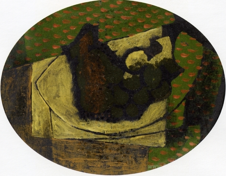 Ti offriamo una riproduzione artigianale su tela dell'opera famosa 'Natura morta con uva' di Georges Braque, dal Museo delle Riproduzioni.