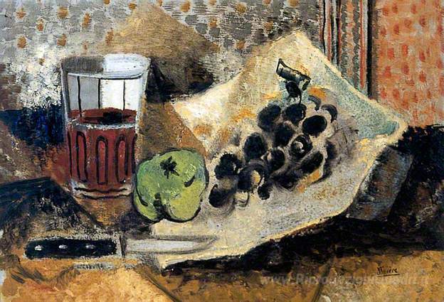Ti offriamo una riproduzione artigianale su tela dell'opera famosa 'Natura morta con vetro e uva' di Roger Bissière, dal Museo delle Riproduzioni.