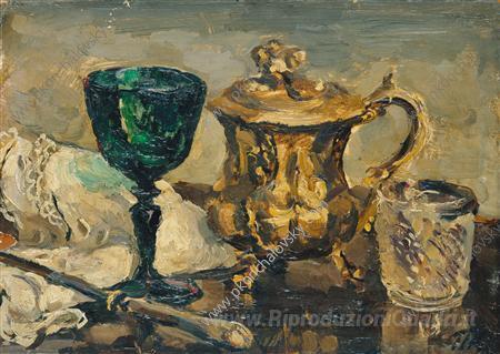 Ti offriamo una riproduzione artigianale su tela dell'opera famosa 'Natura morta. Il vetro verde.' di Pyotr Konchalovsky, dal Museo delle Riproduzioni.
