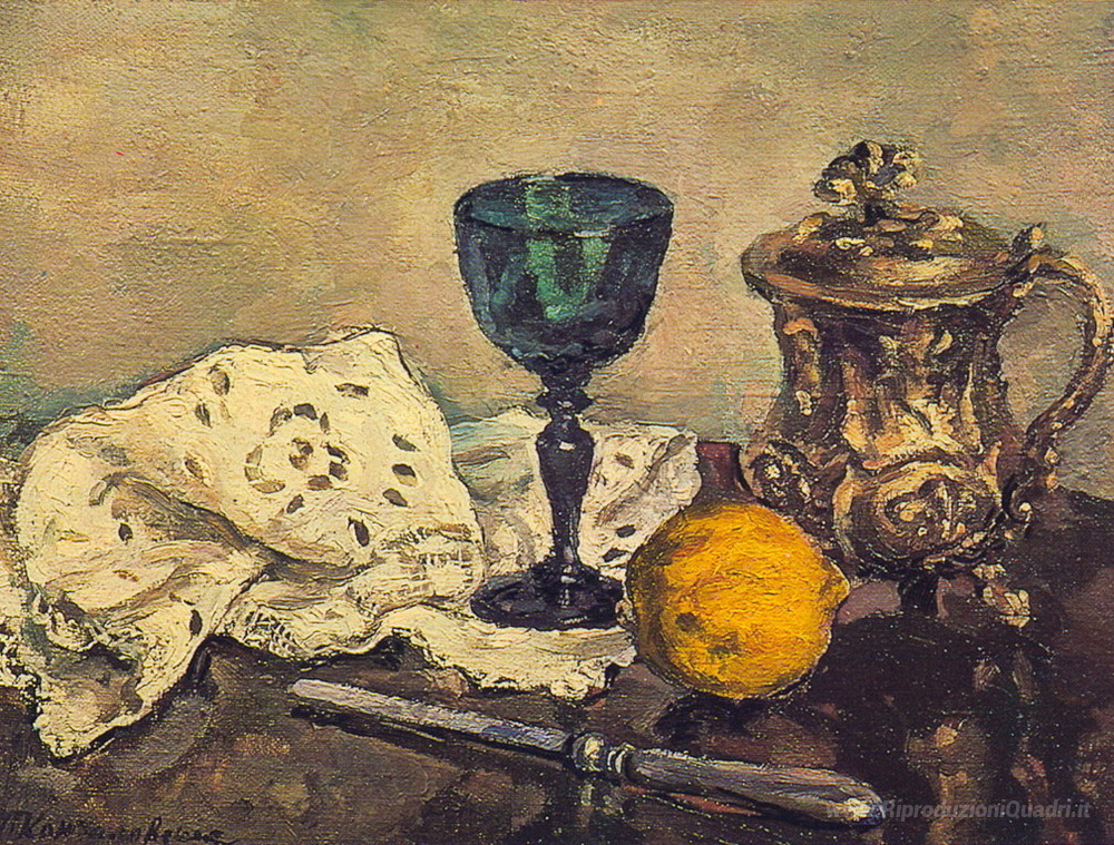 Scoprite l'incantevole opera di Pyotr Konchalovsky, un maestro del Novecento che ha saputo catturare l'essenza della vita quotidiana attraverso la sua sorprendente abilità nell'uso del colore e della luce. La sua celebre opera, Natura morta. Il vetro verde, è un perfetto esempio della sua tecnica distintiva, dove l'osservazione meticolosa degli oggetti si fonde con una composizione armoniosa per creare un'atmosfera di serenità e riflessione.