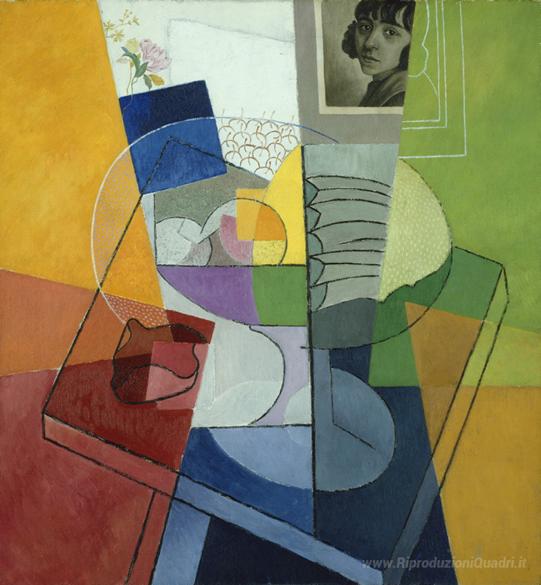 Ti offriamo una riproduzione artigianale su tela dell'opera famosa 'Natura morta. L'espansione centrifuga di colori.' di Gino Severini, dal Museo delle Riproduzioni.