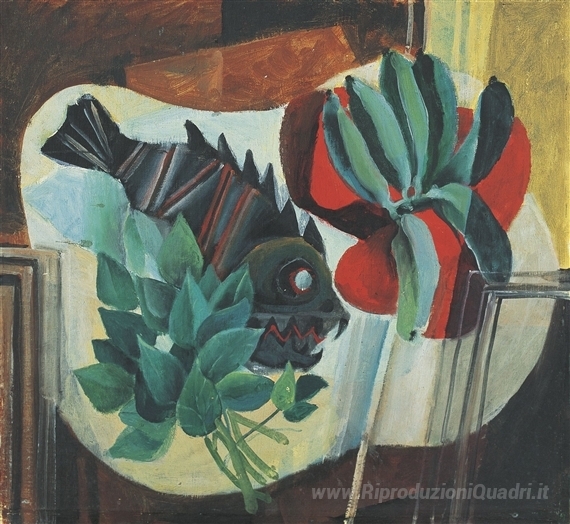 Ti offriamo una riproduzione artigianale su tela dell'opera famosa 'Natura morta' di Vicente Manansala, dal Museo delle Riproduzioni.