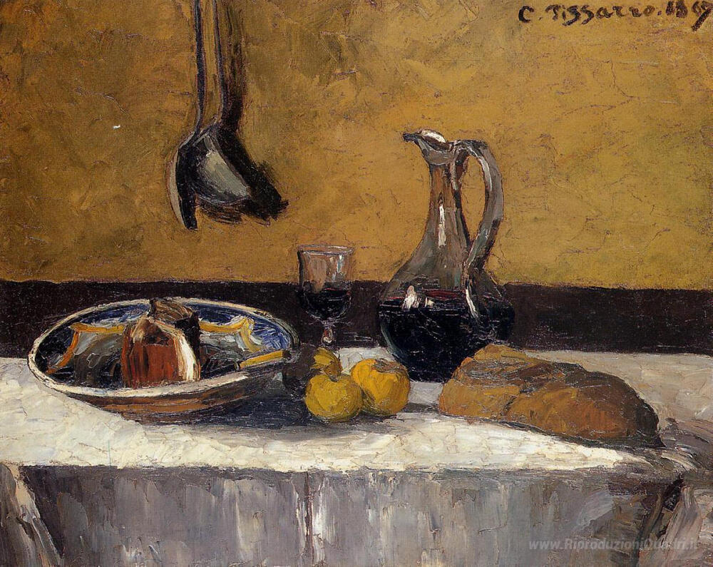 Ti offriamo una riproduzione artigianale su tela dell'opera famosa 'Natura morta' di Camille Pissarro, dal Museo delle Riproduzioni.