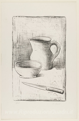 Ti offriamo una riproduzione artigianale su tela dell'opera famosa 'Natura morta' di Carlo Carra, dal Museo delle Riproduzioni.
