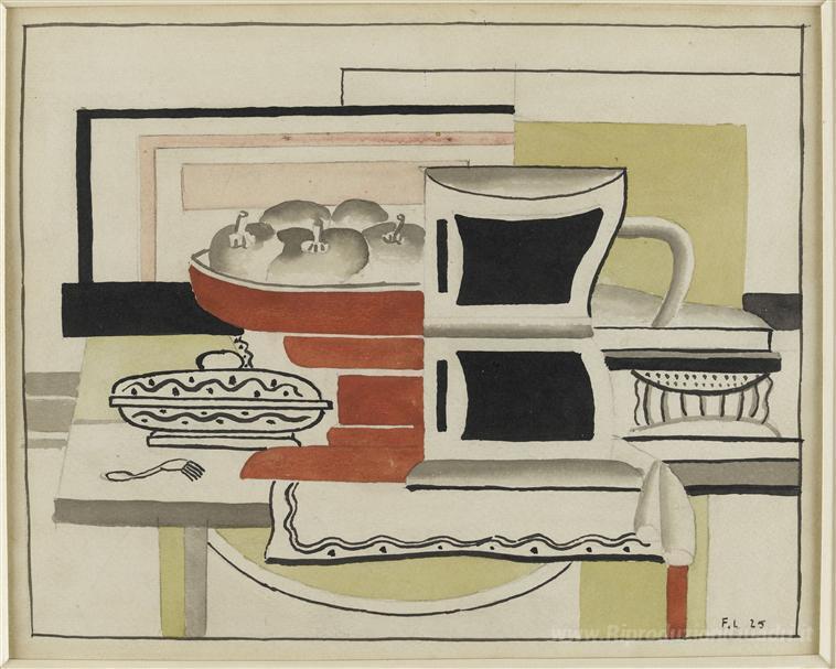 Ti offriamo una riproduzione artigianale su tela dell'opera famosa 'Natura morta' di Fernand Leger, dal Museo delle Riproduzioni.