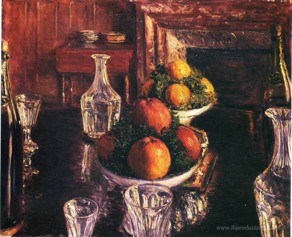 Ti offriamo una riproduzione artigianale su tela dell'opera famosa 'Natura morta' di Gustave Caillebotte, dal Museo delle Riproduzioni.