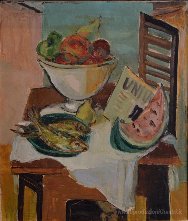 Ti offriamo una riproduzione artigianale su tela dell'opera famosa 'Natura morta' di Ligia Macovei, dal Museo delle Riproduzioni.
