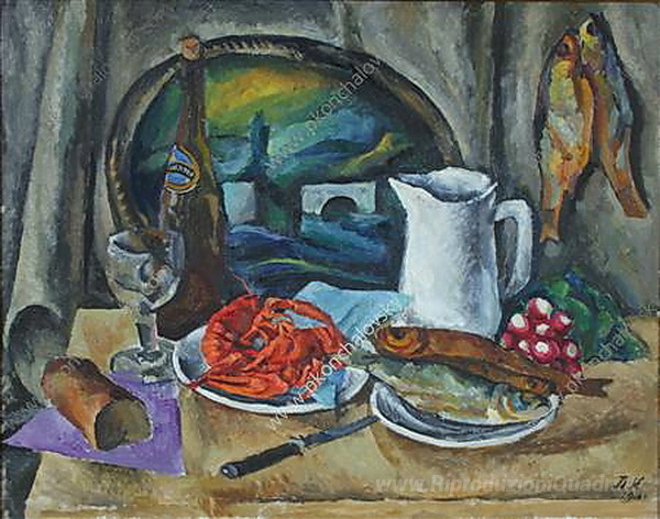 Questa particolare natura morta non è solo un'istantanea di oggetti, ma un'esplorazione del tempo e dell'essenza fragile della vita. Le tecniche a olio applicate da Konchalovsky esaltano ogni dettaglio, trasformando il dipinto in un elemento decorativo in grado di arricchire qualsiasi ambiente. Scegliere Natura morta. Tumori significa portare l'eleganza e la profondità dell'arte russa direttamente a casa tua, creando un'atmosfera raffinata e contemplativa.