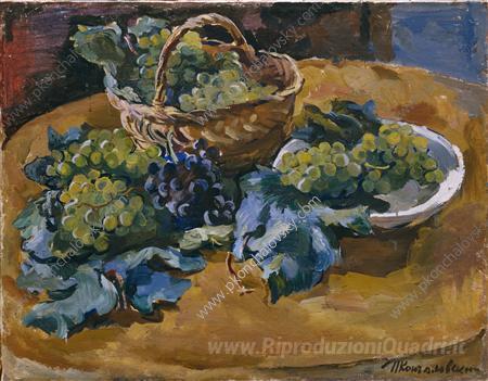 Ti offriamo una riproduzione artigianale su tela dell'opera famosa 'Natura morta. Uva.' di Pyotr Konchalovsky, dal Museo delle Riproduzioni.
