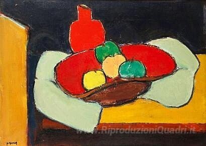 Ti offriamo una riproduzione artigianale su tela dell'opera famosa 'Natura morte aux pommes' di Ion Pacea, dal Museo delle Riproduzioni.