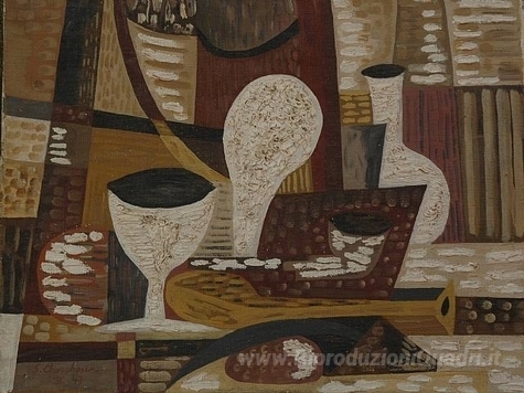 Ti offriamo una riproduzione artigianale su tela dell'opera famosa 'Nature morte à la pipe' di Serge Charchoune, dal Museo delle Riproduzioni.