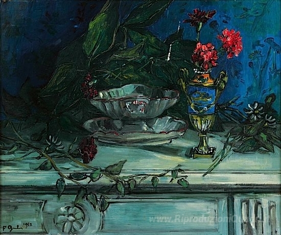 Ti offriamo una riproduzione artigianale su tela dell'opera famosa 'Nature morte à la Saucière' di Francis Gruber, dal Museo delle Riproduzioni.