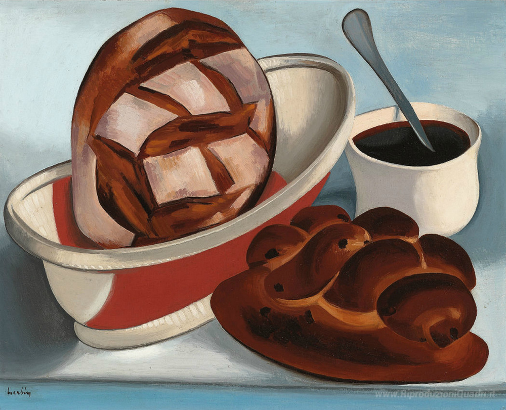 Ti offriamo una riproduzione artigianale su tela dell'opera famosa 'Nature morte à la tasse de café' di Auguste Herbin, dal Museo delle Riproduzioni.