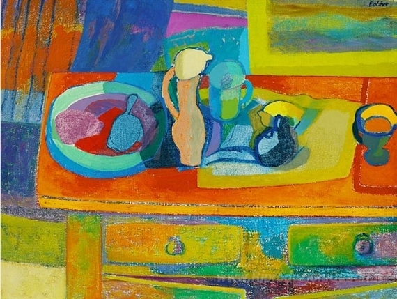 Ti offriamo una riproduzione artigianale su tela dell'opera famosa 'Nature morte au pichet' di Maurice Esteve, dal Museo delle Riproduzioni.