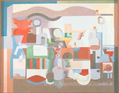Ti offriamo una riproduzione artigianale su tela dell'opera famosa 'Nature morte aux objets nombreux' di Le Corbusier, dal Museo delle Riproduzioni.