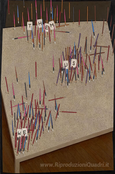 Ti offriamo una riproduzione artigianale su tela dell'opera famosa 'Noi, Us Them,' di John Brack, dal Museo delle Riproduzioni.