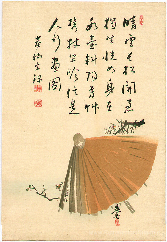 Ti offriamo una riproduzione artigianale su tela dell'opera famosa 'Ombrello e prugna' di Shibata Zeshin, dal Museo delle Riproduzioni.