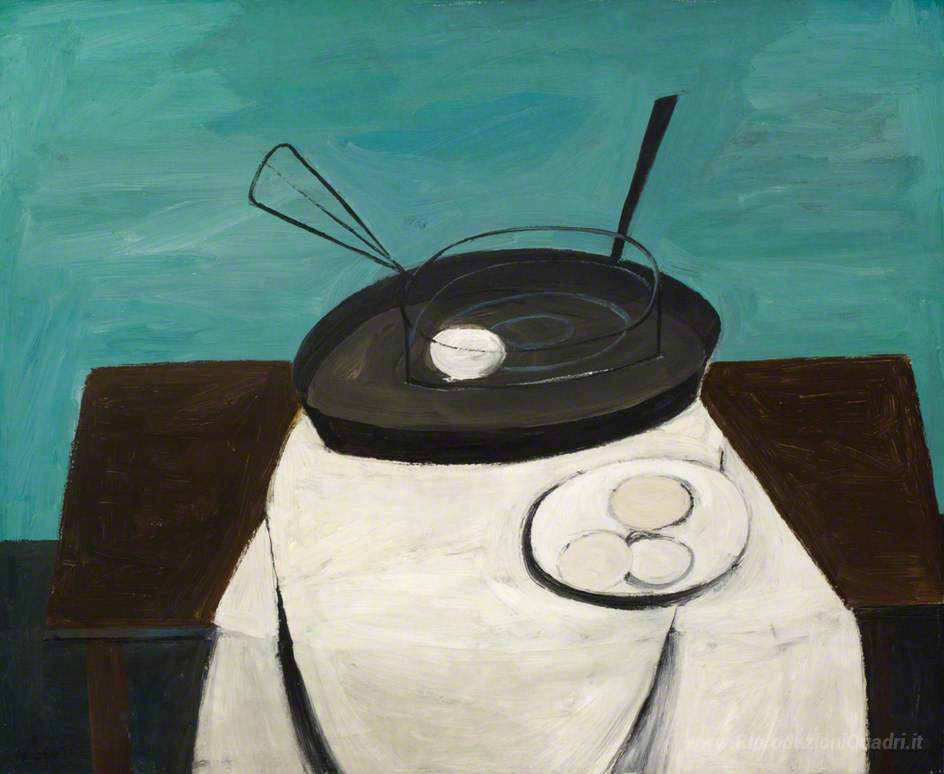 Ti offriamo una riproduzione artigianale su tela dell'opera famosa 'Padella e Basket' di William Scott, dal Museo delle Riproduzioni.