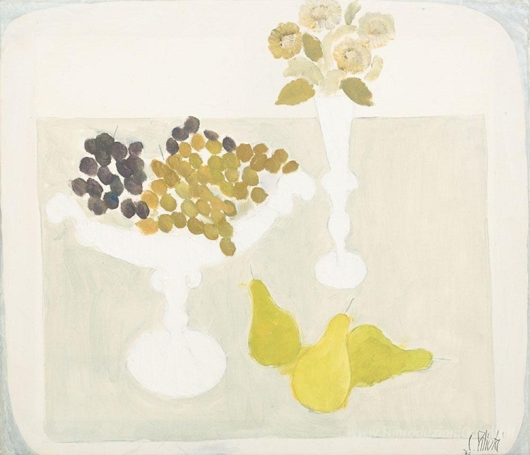 Ti offriamo una riproduzione artigianale su tela dell'opera famosa 'Pere e uva' di Constantin Piliuta, dal Museo delle Riproduzioni.