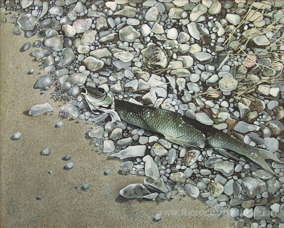 Ti offriamo una riproduzione artigianale su tela dell'opera famosa 'Pesce e rocce' di Ken Danby, dal Museo delle Riproduzioni.