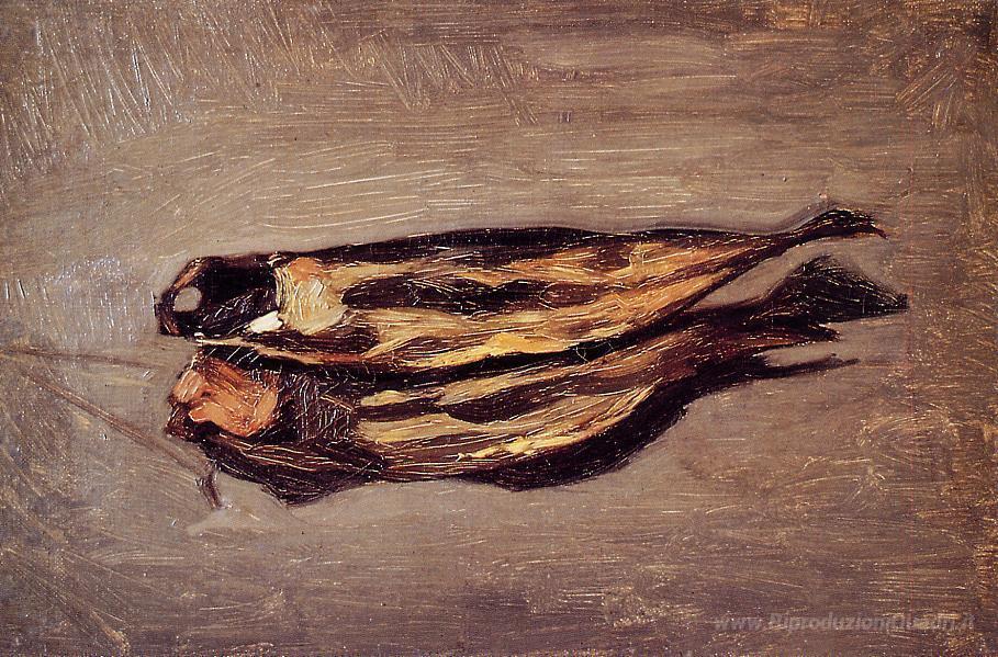 Ti offriamo una riproduzione artigianale su tela dell'opera famosa 'Pesce essiccato' di Frederic Bazille, dal Museo delle Riproduzioni.