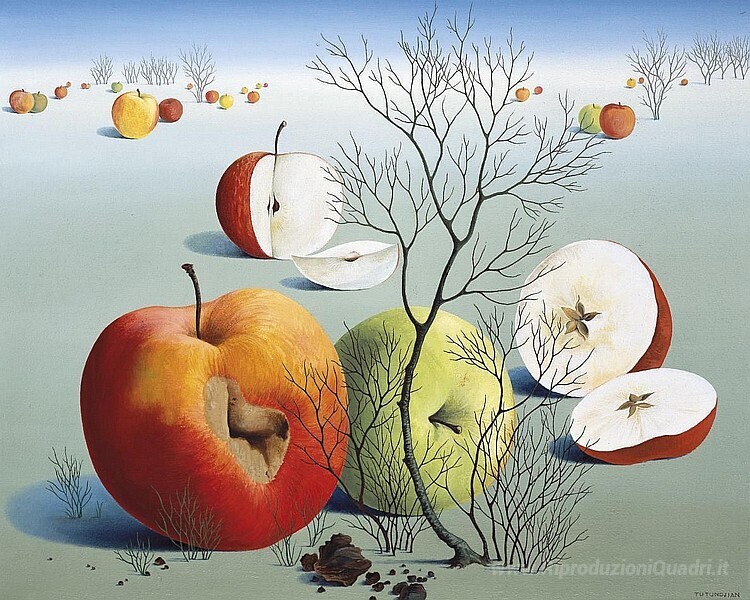 Ti offriamo una riproduzione artigianale su tela dell'opera famosa 'Pommes' di Leon Arthur Tutundjian, dal Museo delle Riproduzioni.