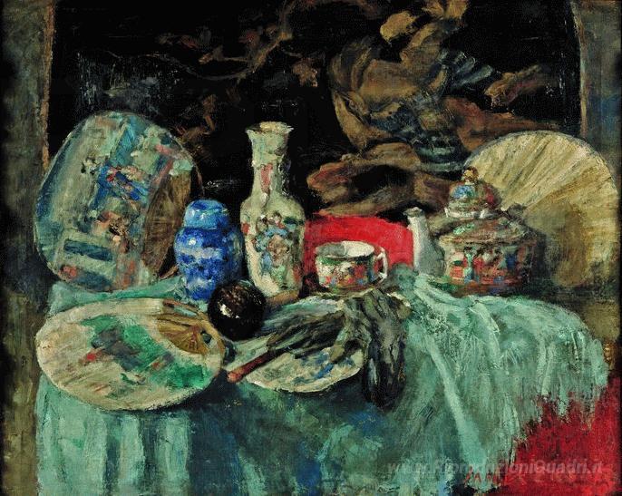 Ti offriamo una riproduzione artigianale su tela dell'opera famosa 'Porcellana cinese con Fans' di James Ensor, dal Museo delle Riproduzioni.