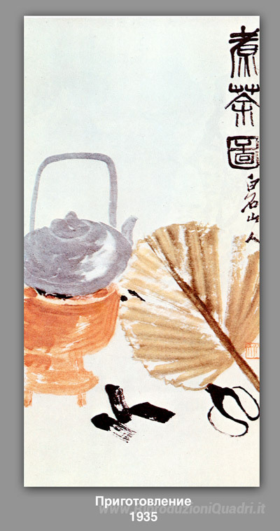 Ti offriamo una riproduzione artigianale su tela dell'opera famosa 'Preparazione' di Qi Baishi, dal Museo delle Riproduzioni.