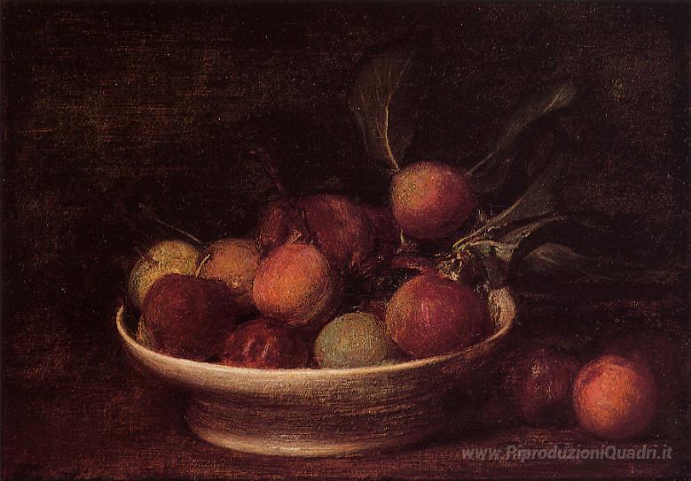 Ti offriamo una riproduzione artigianale su tela dell'opera famosa 'Prugne e pesche' di Henri Fantin-Latour, dal Museo delle Riproduzioni.