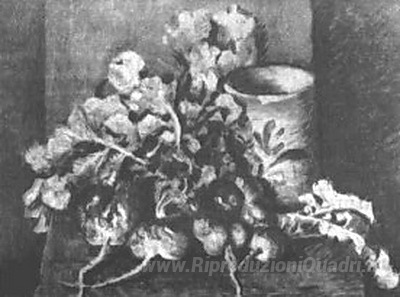 Ti offriamo una riproduzione artigianale su tela dell'opera famosa 'Ravanello' di Ilya Mashkov, dal Museo delle Riproduzioni.