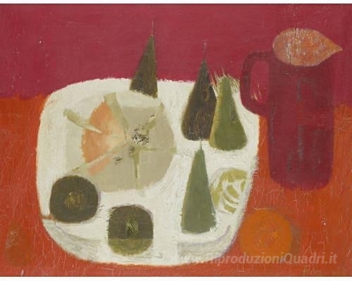 Ti offriamo una riproduzione artigianale su tela dell'opera famosa 'Red Jug' di Mary Fedden, dal Museo delle Riproduzioni.