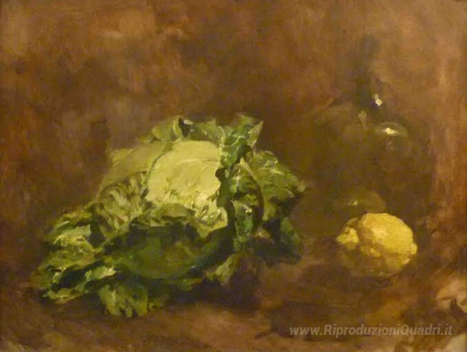 Ti offriamo una riproduzione artigianale su tela dell'opera famosa 'Repolho' di Columbano Bordalo Pinheiro, dal Museo delle Riproduzioni.