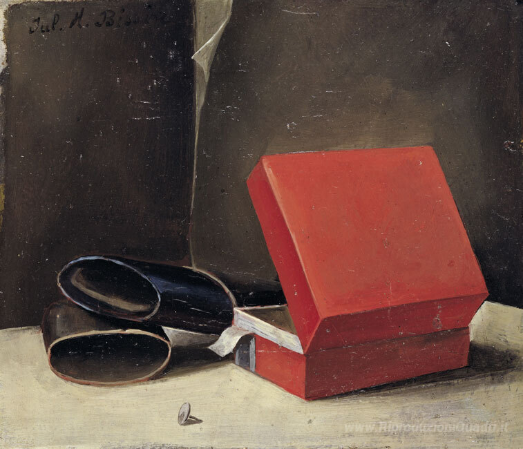 Scoprite l’incanto dei dipinti a olio italiani, dove la maestria artistica incontra l’emozione del vissuto. Julius Bissier, un maestro nel panorama dell'arte contemporanea, rappresenta un unicum nel suo genere. La sua opera "Scatola rossa con astuccio per occhiali" trasmette una delicata armonia, giocando con forme e colori che catturano l’attenzione e l’immaginazione. Bissier, famoso per la sua abilità nell'uso del colore e nella composizione, incarna un linguaggio visivo che invita alla riflessione e alla contemplazione.