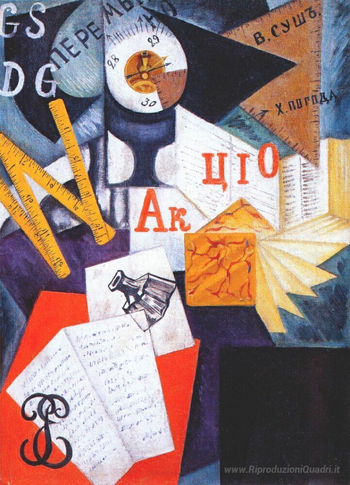 Ti offriamo una riproduzione artigianale su tela dell'opera famosa 'Scrittoio' di Olga Rozanova, dal Museo delle Riproduzioni.