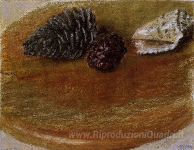 Ti offriamo una riproduzione artigianale su tela dell'opera famosa 'Shell e Coni' di Avigdor Arikha, dal Museo delle Riproduzioni.