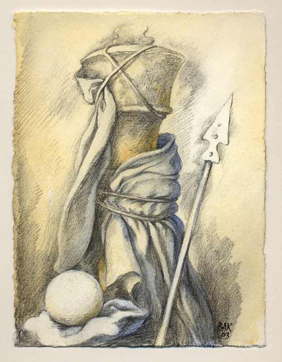 Ti offriamo una riproduzione artigianale su tela dell'opera famosa 'Sovrano' di Samuel Bak, dal Museo delle Riproduzioni.