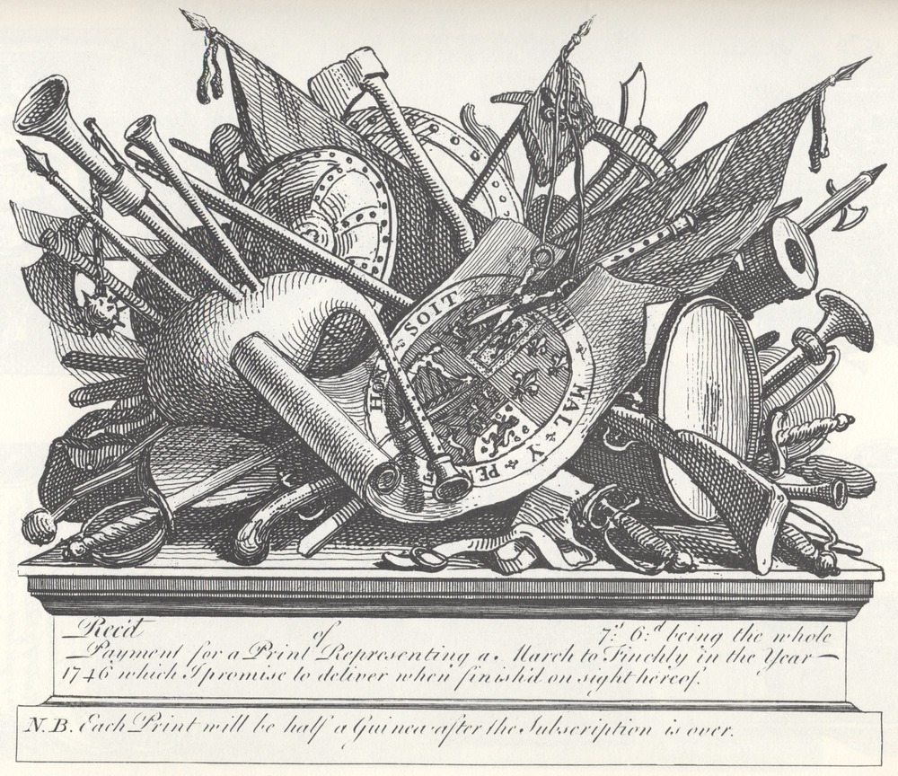 Ti offriamo una riproduzione artigianale su tela dell'opera famosa 'Stand di armi e strumenti' di William Hogarth, dal Museo delle Riproduzioni.