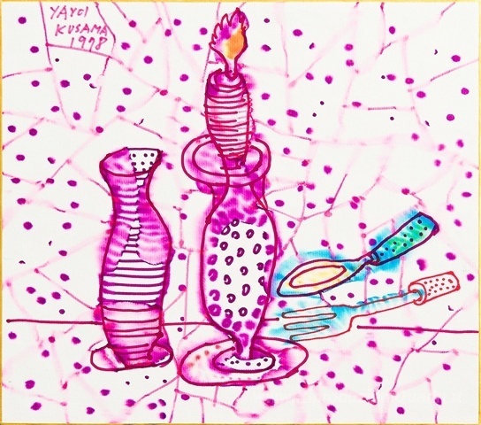 Ti offriamo una riproduzione artigianale su tela dell'opera famosa 'Still Life di Candeliere' di Yayoi Kusama, dal Museo delle Riproduzioni.