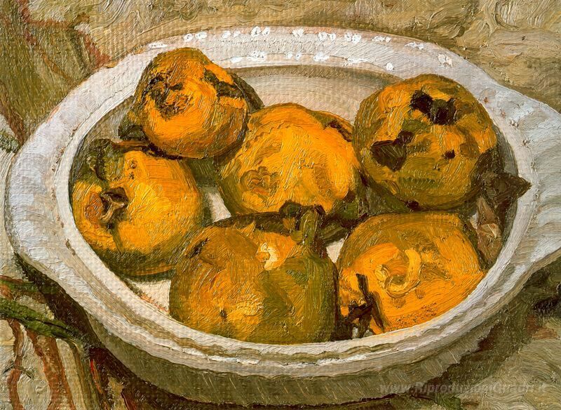 Ti offriamo una riproduzione artigianale su tela dell'opera famosa 'Still Life (Mele cotogne)' di Lucian Freud, dal Museo delle Riproduzioni.