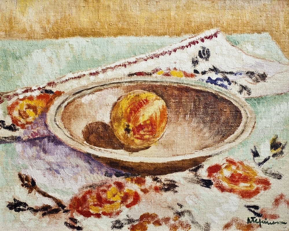 Ti offriamo una riproduzione artigianale su tela dell'opera famosa 'Still-life con Apple' di George Stefanescu-Ramnic , dal Museo delle Riproduzioni.