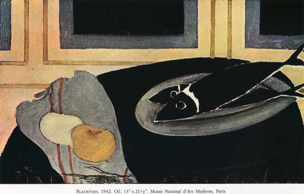 Ti offriamo una riproduzione artigianale su tela dell'opera famosa 'The Black Pesce' di Georges Braque, dal Museo delle Riproduzioni.