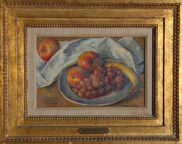 Ti offriamo una riproduzione artigianale su tela dell'opera famosa 'Un piatto di frutta' di Robert Brackman, dal Museo delle Riproduzioni.